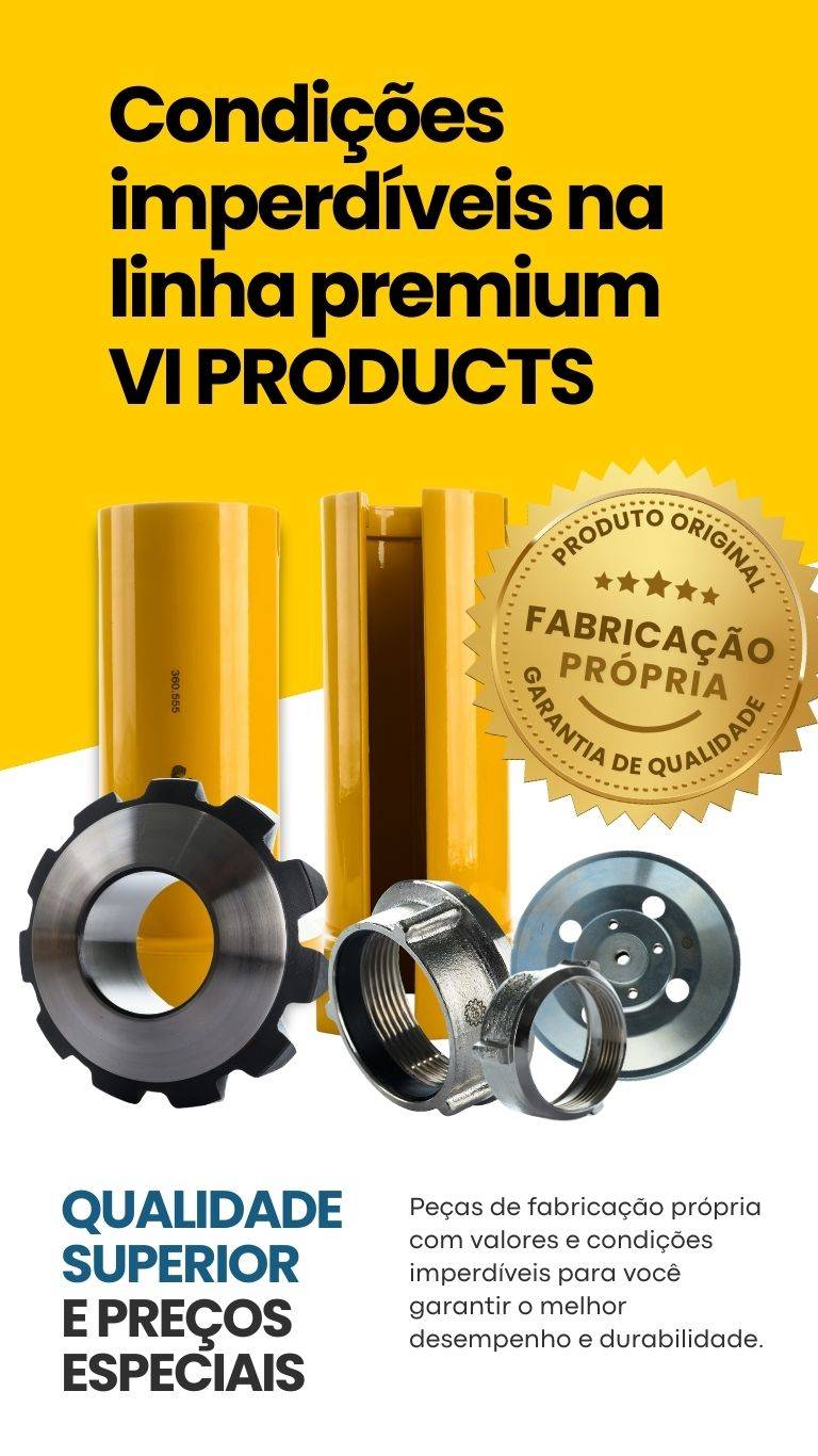 As peças premium são peças de reposição da nossa marca VI Products, fabricadas com tecnologia de ponta para equipamentos da linha Volvo e similares. Garantimos que essas peças têm medidas originais, assegurando a eficiência e durabilidade, além de um alto desempenho do equipamento a um custo acessível.